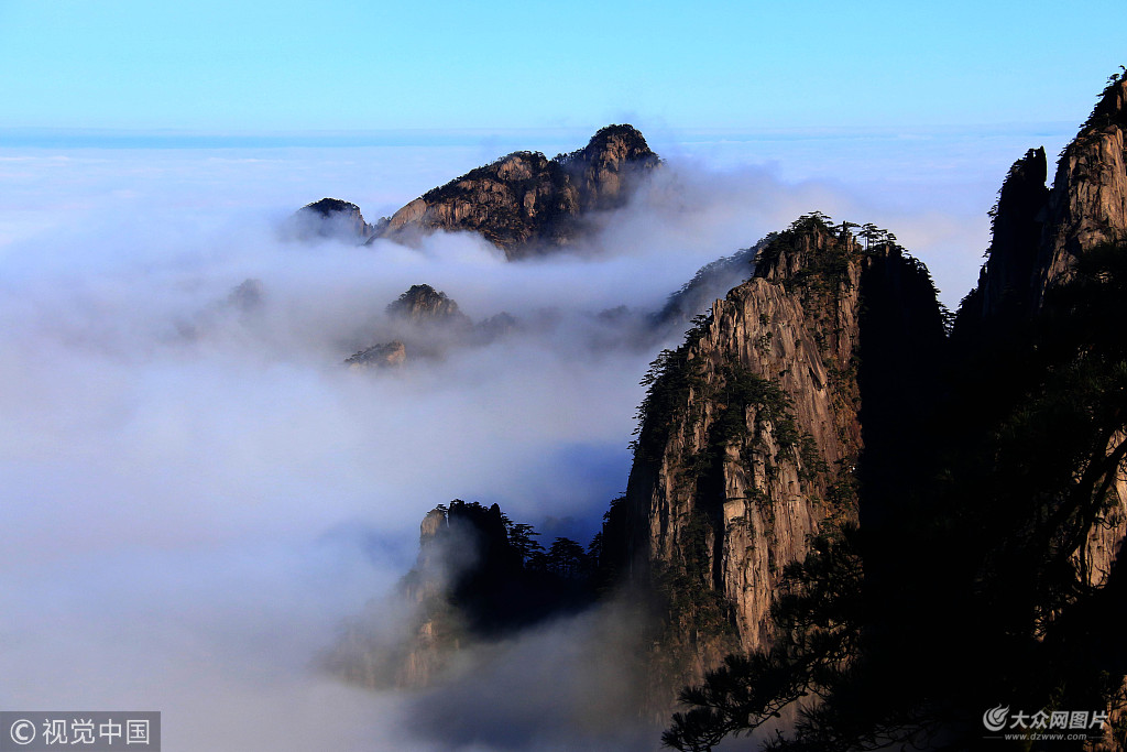 雨后初霽的安徽黃山風景區,出現了冬日氣勢恢宏的壯美云海。