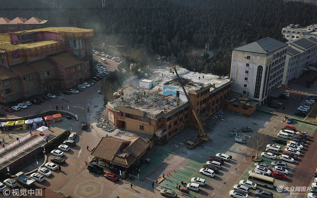 直擊濟南魚翅皇宮大酒店拆違現場 18臺挖掘機作業