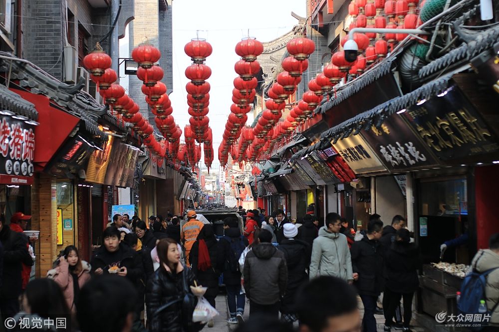 濟南芙蓉街掛滿紅燈籠 喜慶祥和迎新年