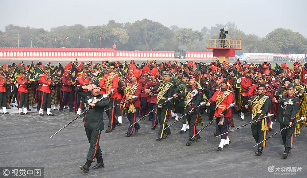 當地時間2019年1月13日,印度新德里,印度士兵參加建軍日帶妝彩排。