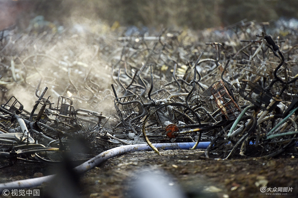 2019年1月18日15時48分,合肥119指揮中心接到報警,蜀山區金寨路與嘉禾路交口嘉和苑小區東側一露天共享單車堆放點發生火災。