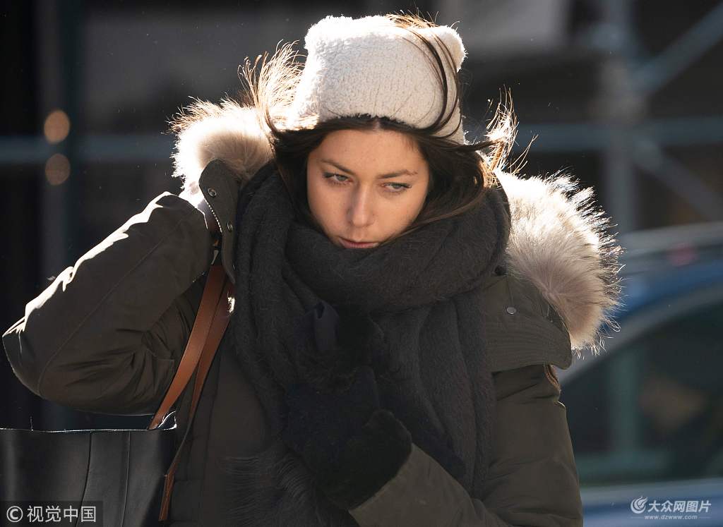 當(dāng)?shù)貢r(shí)間2019年1月21日,美國(guó)紐約,行人全副武裝對(duì)抗嚴(yán)寒。嚴(yán)寒和大風(fēng)席卷了美國(guó)東部大部分地區(qū)。