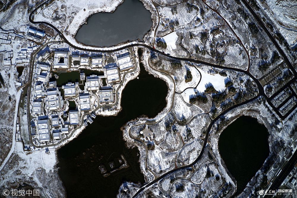 2019年1月31日,一場冬雪后,山東青島西海岸新區剛剛晉升為國家級濕地的唐島灣公園內美景如畫,拆建的明清古建筑原本白墻黑瓦變成一片純白,大海與濕地緊密相連。藍天白云下,白雪覆蓋的唐島灣國家濕地公園與正在崛起的青島西海岸新城區和諧完美的融為一體。