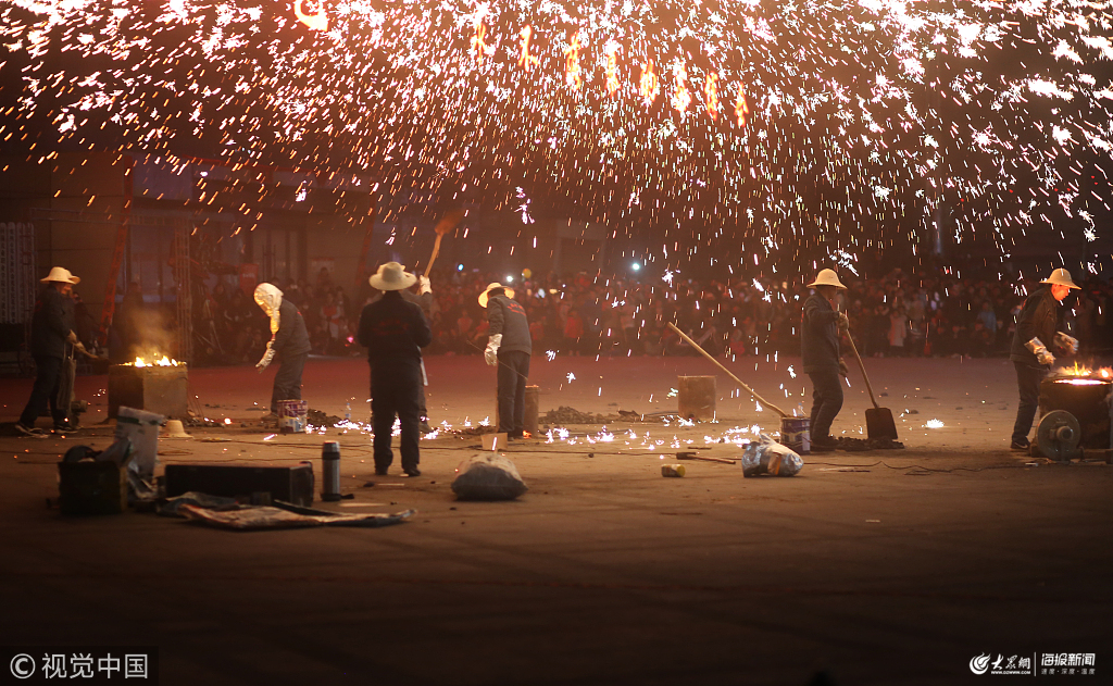 2019年2月19日,鄭州,元宵佳節,一場傳統的打鐵花表演吸引了眾多市民到場觀看。