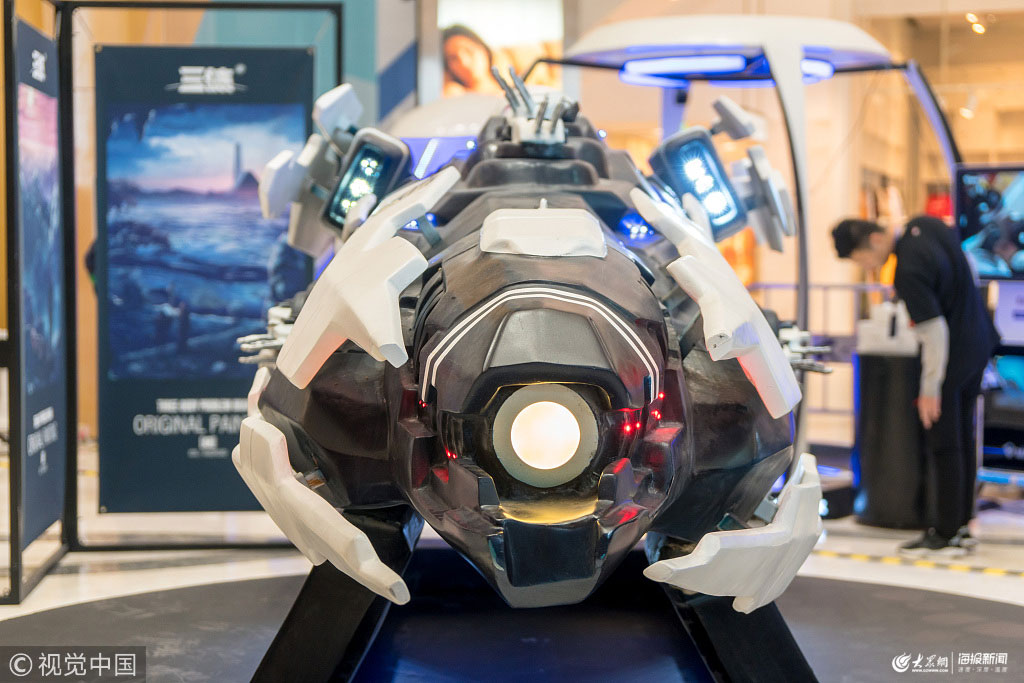 2019年3月17日,上海,三體舞臺劇探秘展目前正在靜安大悅城內舉辦,展覽中不僅有沉浸式3D體驗,超過50幅三體原畫(其中10多幅是AR原畫),展覽中《三體II:黑暗森林》里劉慈欣筆下的“藍色空間號”戰艦模型更是十分引人矚目,吸引了不少觀眾駐足觀看。
