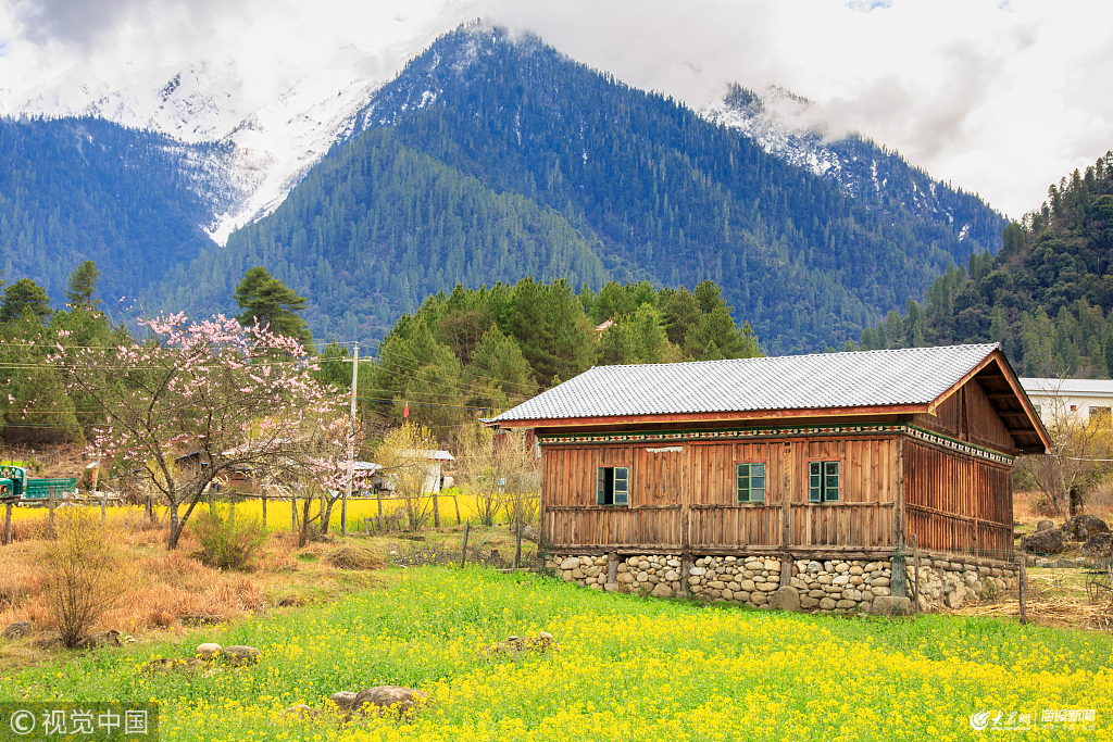 2019年3月19日,西藏易貢,春日里油菜花田如畫卷般美麗。