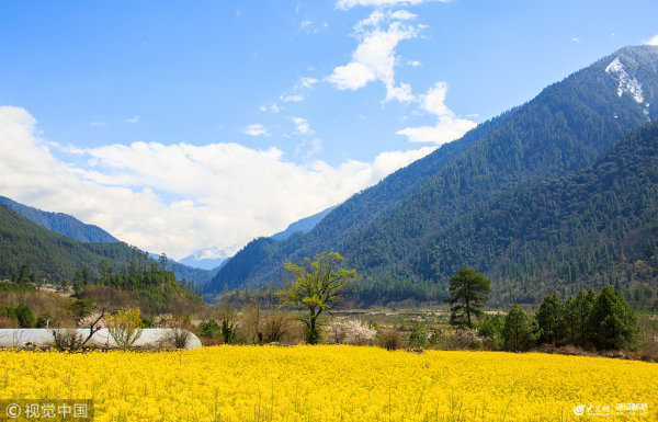 西藏林芝:油菜花開(kāi)滿(mǎn)目春 金黃燦燦美如畫(huà)