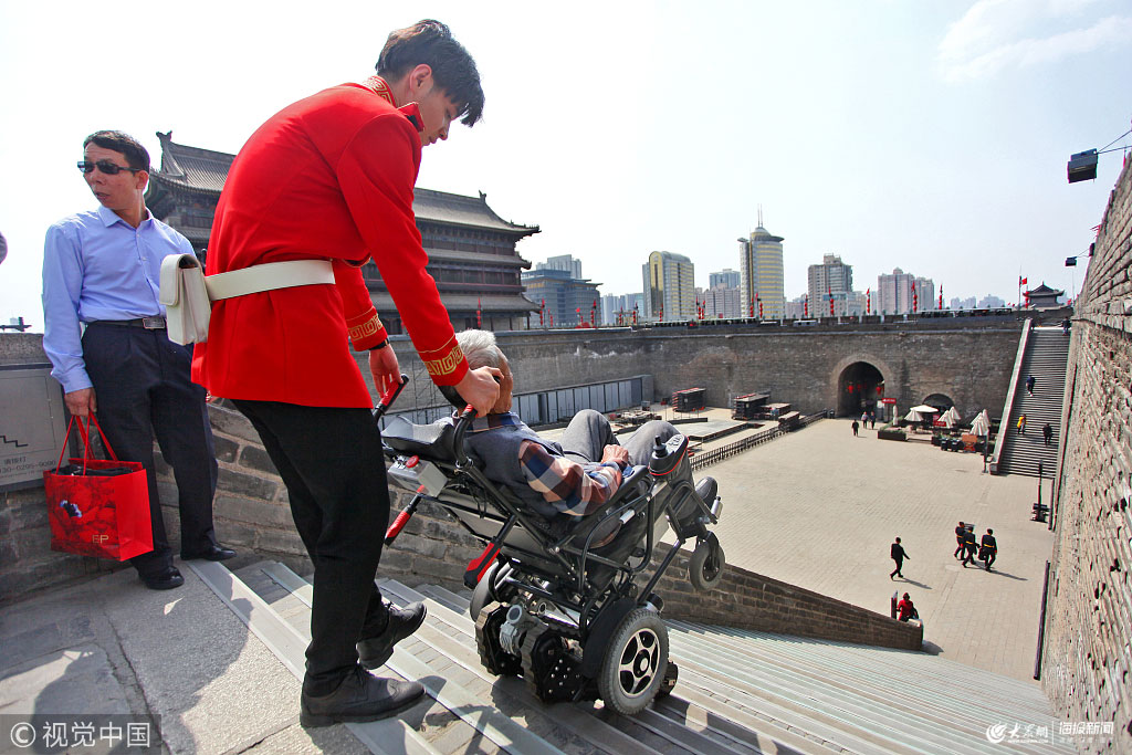 為了方便老年人和腿腳不便的游客,西安城墻南門入口專門配備了一臺“爬樓機”,幫助游客上下臺階,引來不少游客點贊。3月20日,在西安城墻南門登城處,來自黑龍江84歲張大爺就體驗了一把“爬樓機”,因為不用為爬樓梯犯難,張大爺輕松登上視野開闊的古城墻,眺望遠處的美景老人心情特別舒展。