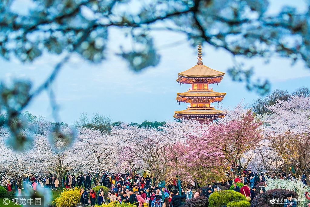 武漢:花開正盛 航拍東湖櫻花園夜景美爆