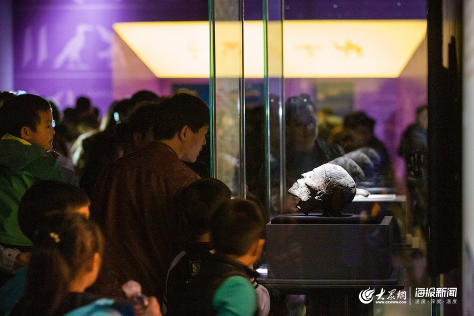 大眾網·海報新聞濟南3月31日訊(記者 畢勝)今天上午,“不朽之旅——古埃及人的生命觀”特展在山東博物館開展。一大早,在山東博物館及展廳門前,市民與游客便排起了長隊等待參觀,截至中午,已有近萬人目睹了埃及木乃伊的真容。