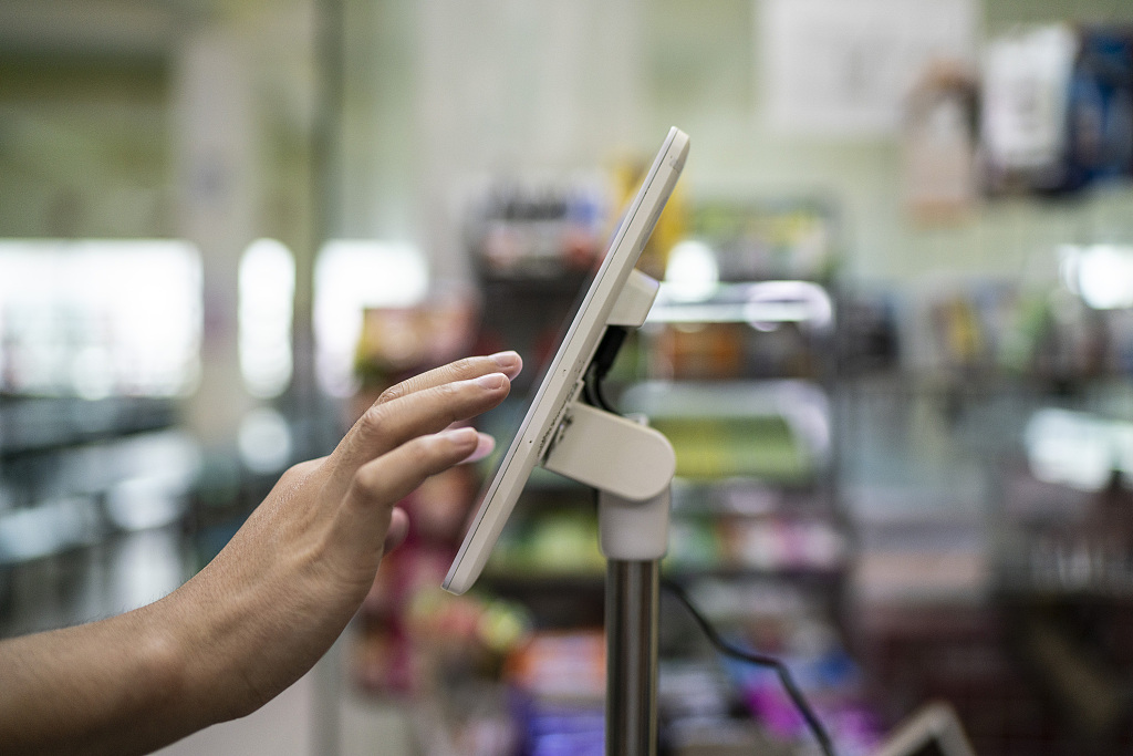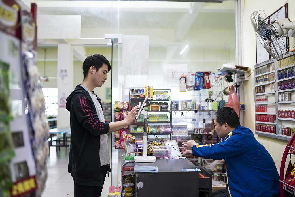 2019年4月4日,廣東深圳,今天在深圳市華強北的一家商店里他正在幫助店老板安裝、調(diào)試一款叫做支付寶“蜻蜓”的刷臉機具,這也是是他目前主要的工作,“干這一行懂點技術(shù)、肯吃苦就行,年入20萬不是夢!