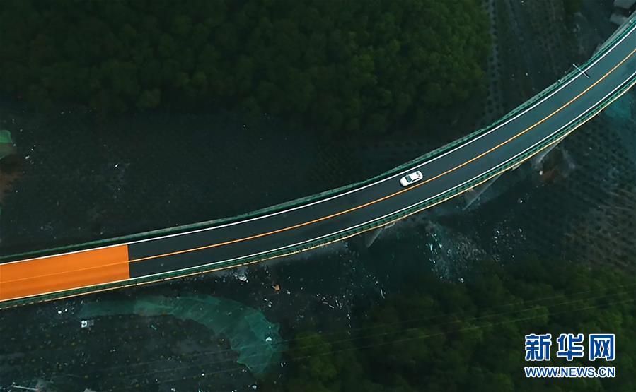 6月11日,一輛汽車在青海省扎隆溝至碾伯鎮公路上行駛(無人機拍攝)。新華社記者 張宏祥 攝