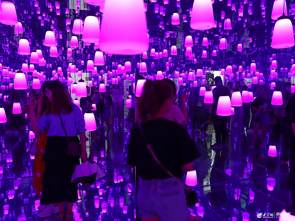 青島,一商場內出現“星空博物館”,館內遍布各色彩燈和宇宙天體背景,游客置身其中仿佛進入星空,吸引許多年輕人拍照、游玩。