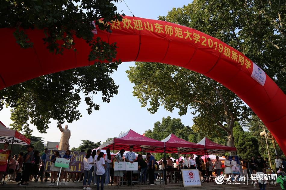 大眾網·海報新聞濟南9月1日訊(記者 儀首歌 孫杰)9月1日,山東師范大學迎來開學季,不少新生前來報到,校園里充滿青春的氣息。各個專業推出獨具專業特點的迎新方式,展示專業特色。
