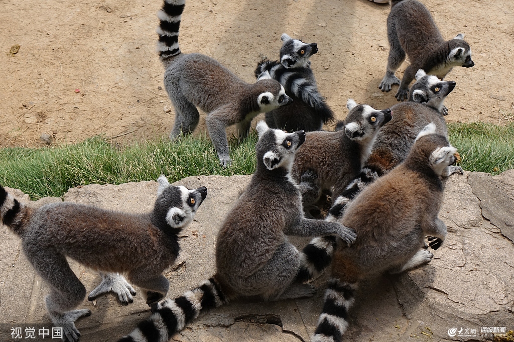 2019年9月6日,山東青島森林野生動物世界,環尾狐猴與游客零距離接觸,場面溫馨,諧趣橫生,令人忍俊不禁。圖為環尾狐猴正在觀望。