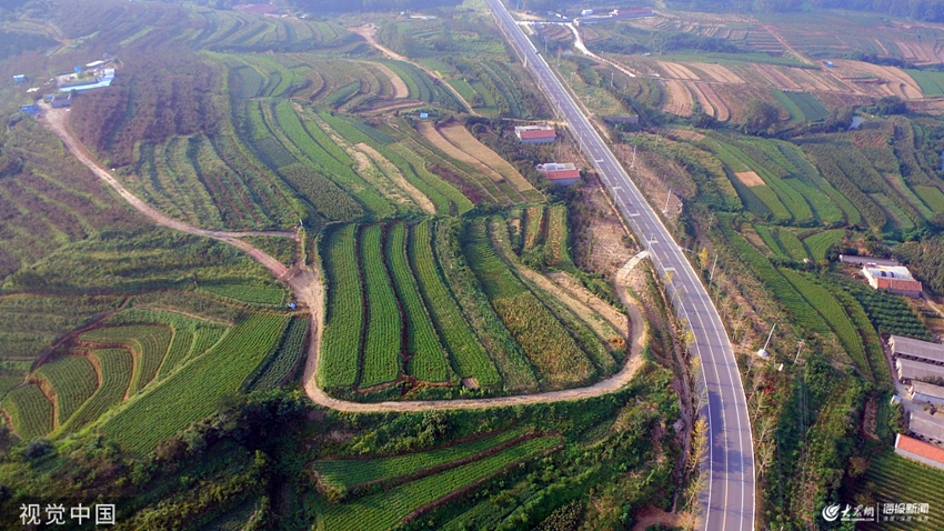 2019年9月5日,在山東省日照市南湖鎮(zhèn),環(huán)馬陵水庫公路像一條飄帶,公路兩邊的葡萄園、農(nóng)田、村莊和親子樂園,星羅棋布,點綴在水庫周邊,形成了一幅幅美不勝收的七彩畫卷。