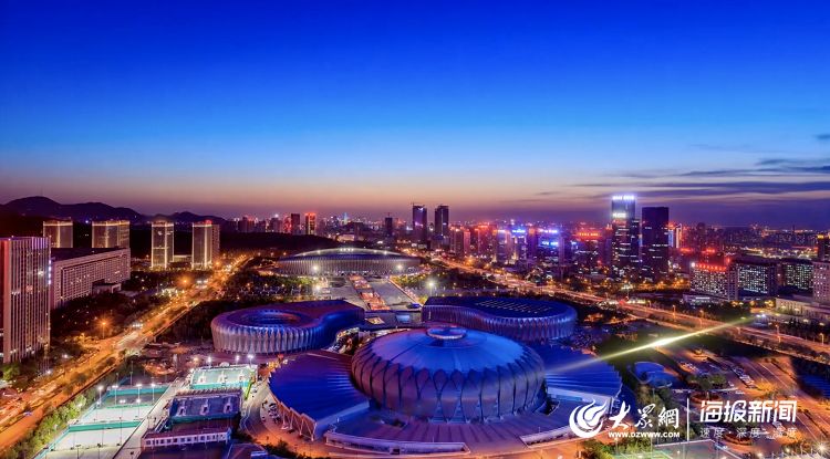 華燈初上,濟南奧體中心流光溢彩