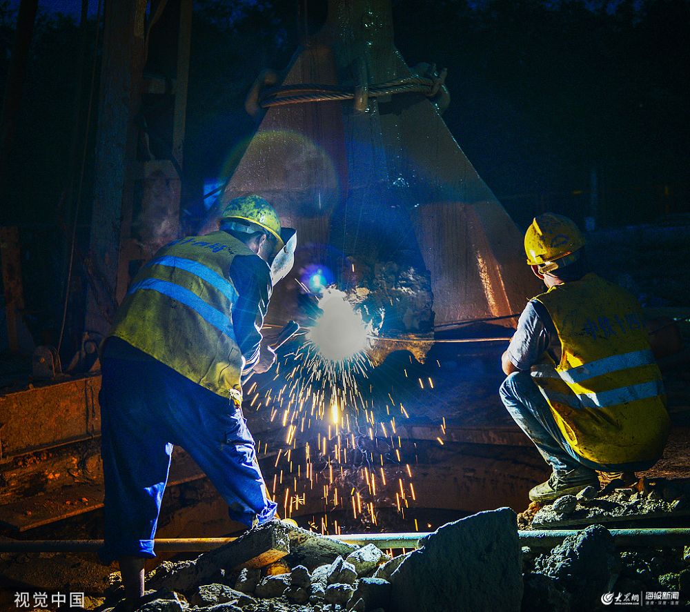 2019年9月16日,山東棗莊,棗菏高速公路井亭段高架橋施工現場,工人晚間加班加點趕工期。