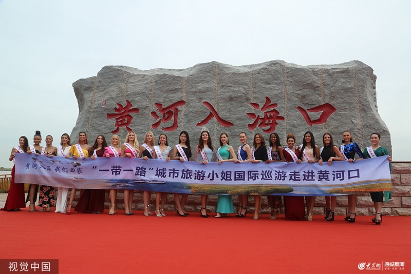 2019年9月20日,山東東營市,“一帶一路城市旅游小姐國際巡游山東東營站”在黃河口生態旅游區啟動。來自世界30個國家的城市旅游小姐齊聚黃河入海口,用美人伴美景,展示出黃河口的美麗與魅力。來自各國的旅游小姐冠軍在景區內瀏覽美景,并進行宣傳拍攝。用美人伴美景,景美人也美的靚麗風景向世界傳遞“黃河入海”的聲音,充分展現景區的自然生態和諧之美,提升景區宣傳的廣度與深度。