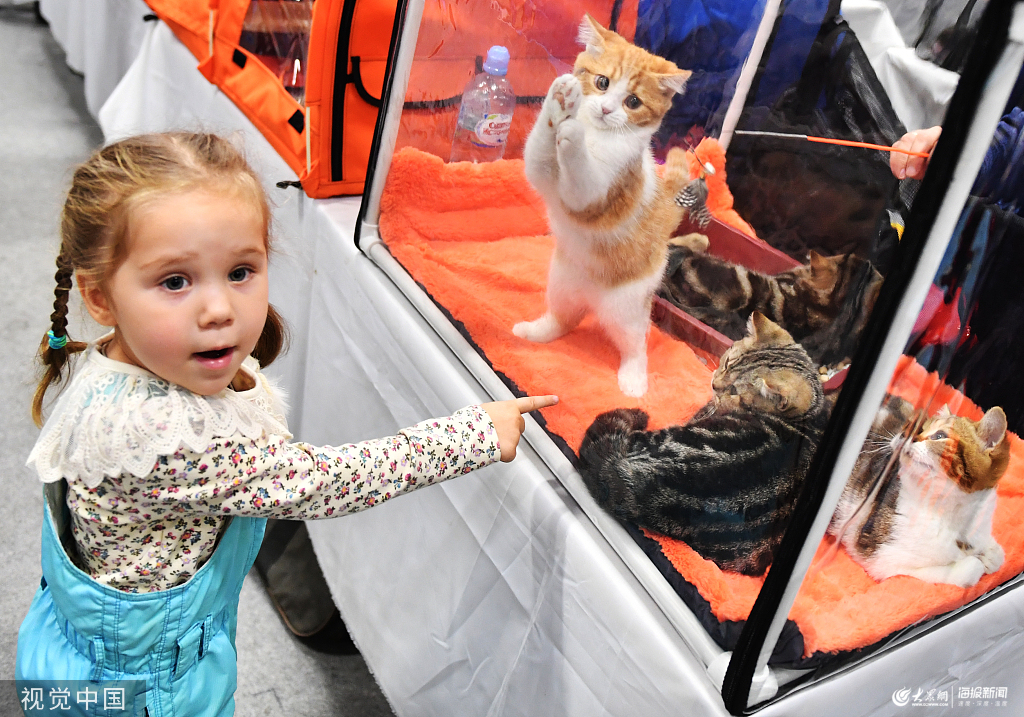 當地時間2019年10月12日,俄羅斯莫斯科,當地舉行貓展,吸引不少人來參觀。