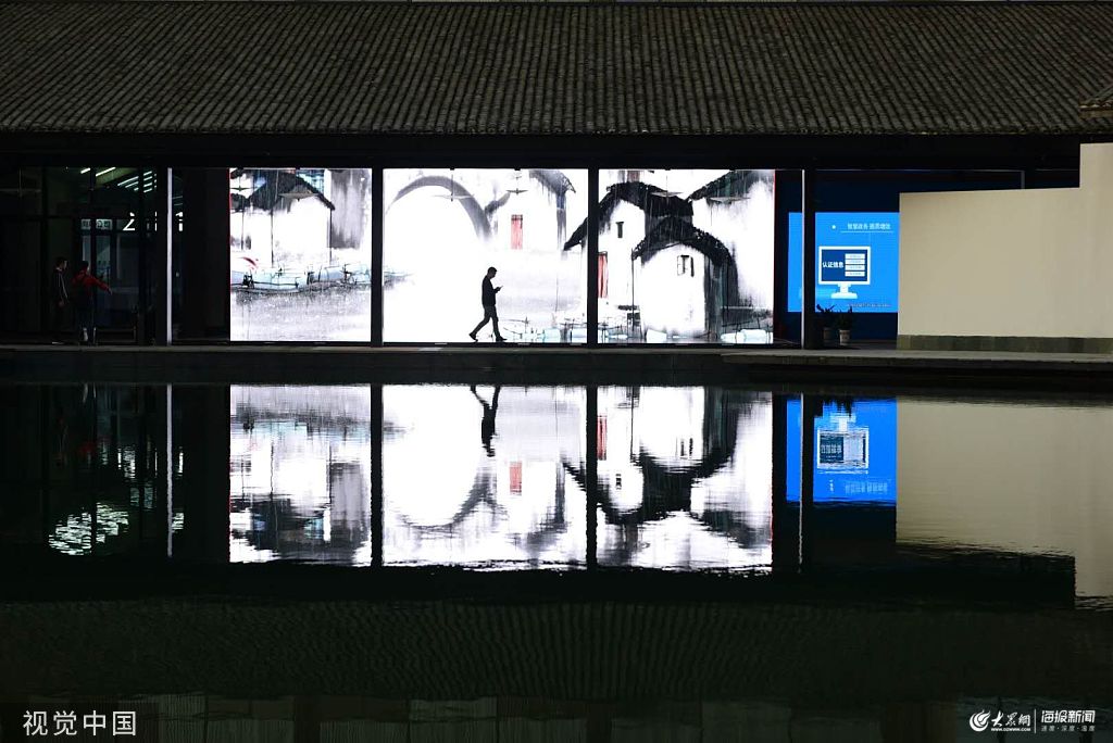 2019年10月21日,浙江嘉興,烏鎮互聯網國際會議中心夜景。