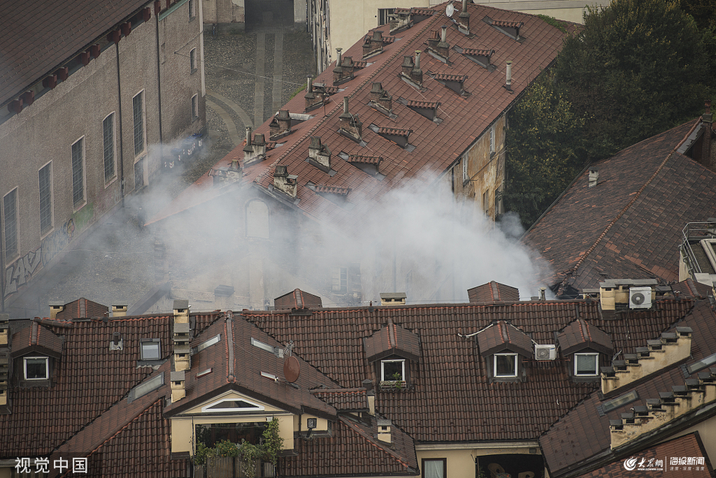 當地時間2019年10月21日,意大利都靈,聯(lián)合國教科文組織世界遺產“Cavallerizza Reale”發(fā)生火災。消防隊員稱,大樓的屋頂在著火后部分坍塌。“Cavallerizza Reale”建于300年前,是一所專為薩沃伊王室高級軍官開設的軍事學院。