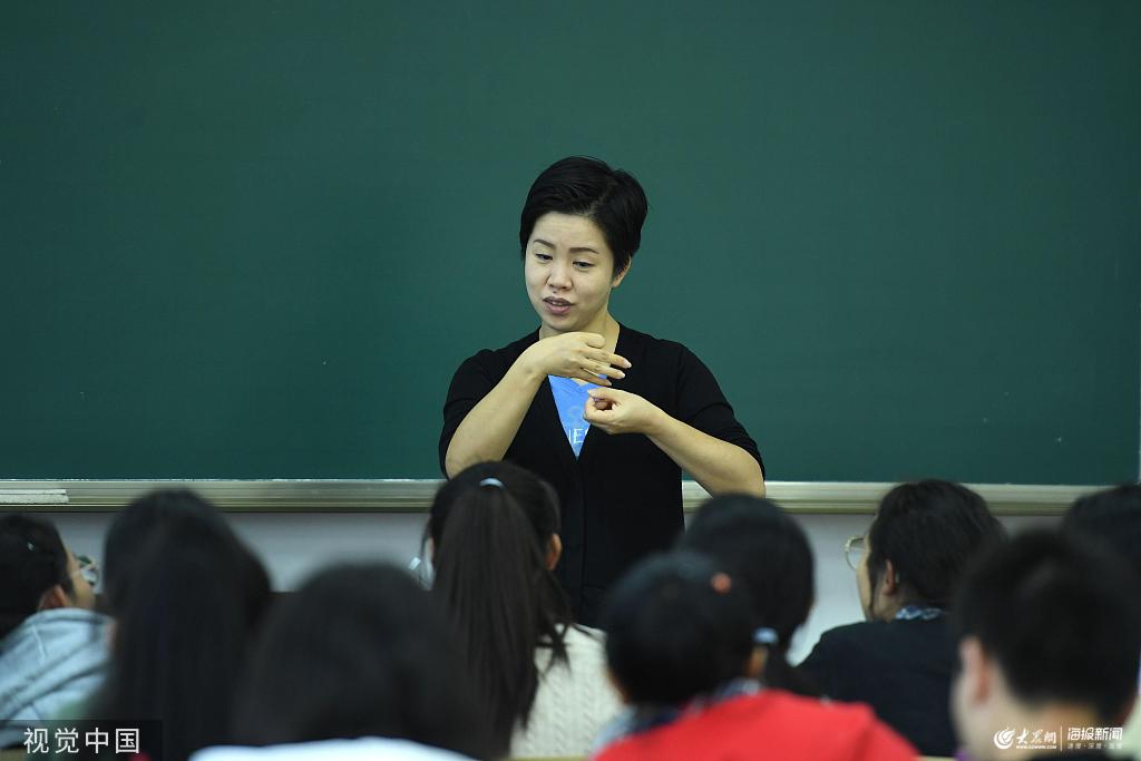 2019年10月18日,中國(guó)首位聾人語(yǔ)言學(xué)博士鄭璇在重慶師范大學(xué)特教樓用手語(yǔ)為24名聾生上手勢(shì)漢語(yǔ)課。