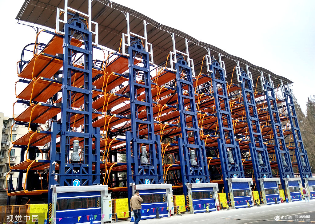 上海,一座占地約200平米七層樓高的在建立體停車場亮相靜安區一家醫院大院內,從車位設置看能同時容納近60輛轎車停放,該智能停車位通過齒輪循環傳送升降,利用空中空間,節省地面面積。