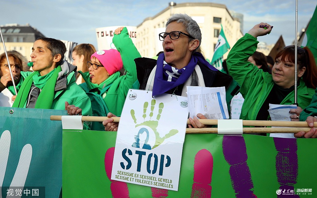 比利時(shí)布魯塞爾,民眾參加示威游行,呼吁終結(jié)殺害女性的暴行。