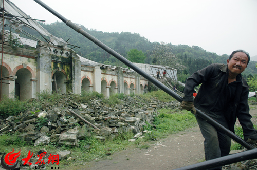 大眾網彭州4月26日訊(特派記者 趙爾印)采訪團前期了解到,彭州市白鹿鎮有著一百年歷史的“領報修院”,也稱白鹿書院,在5.12地震中垮掉,記者一行決定前往實地采訪。在白鹿鎮,記者看到,這座教堂慘不忍睹,如果沒有老建筑前立著的石碑,很難認出這里就是白鹿書院。目前白鹿書院剛剛啟動修繕工作。