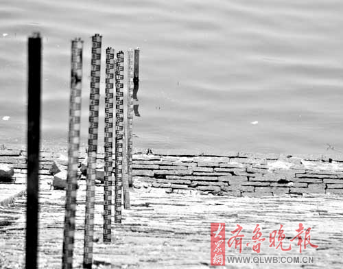 自濟南趵突泉水位跌破警戒線后,濟南臥虎山水庫開始放水補源,通過“無私奉獻”,幫助濟南地下水水位上升。加上降雨、節(jié)水等因素,濟南地下水位開始穩(wěn)步回升,如今已經(jīng)脫離“危險區(qū)”。圖為臥虎山水庫的水位因為補源大幅下降。 本報記者 周青先 攝 |