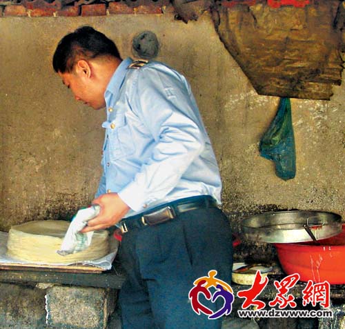 用來(lái)制作涼皮的灶臺(tái)臟亂不堪。
