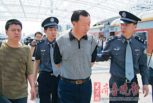 1日中午1時30分許,從沈陽北開過來的1033次列車駛進濟南火車站站臺,歷下公安分局經(jīng)偵大隊大隊長毛偉杰等快速向2號車廂跑去。一名背著手的高個男子在兩名便衣男子的夾擊下走下列車。
