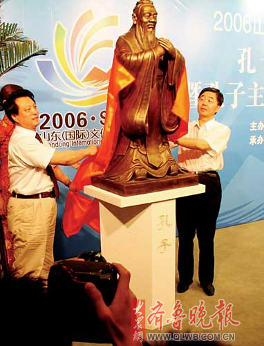 齊魯晚報(bào)濟(jì)南6月13日訊 13日上午,山東(國際)文化產(chǎn)業(yè)博覽會組委會和中國孔子基金會在濟(jì)南召開新聞發(fā)布會,向海內(nèi)外正式公布孔子標(biāo)準(zhǔn)像雕塑(初稿)。新公布的孔子標(biāo)準(zhǔn)像塑像,在展現(xiàn)孔子思想家、教育家風(fēng)范的同時(shí),突出了其可親可敬的長者風(fēng)范。 本次展出的孔子標(biāo)準(zhǔn)像雕塑初稿,是由中國孔子基金會委托山東工藝美術(shù)學(xué)院潘魯生院長和胡希佳教授牽頭組成創(chuàng)作小組完成的。 據(jù)介紹,孔子標(biāo)準(zhǔn)像塑造的原則是尊重歷史依據(jù),尊重約定俗成的形象,以唐代吳道子的行教像為基礎(chǔ),重點(diǎn)突出體現(xiàn)孔子古代偉大思想家、教育家的風(fēng)范與氣質(zhì),力求展現(xiàn)孔子博大、智慧、儒雅、和藹可親的圣人形象。 中國孔子基金會副理事長兼秘書長張樹驊在發(fā)布會上說,評選制定孔子標(biāo)準(zhǔn)像是一項(xiàng)具有重大歷史意義的工作。孔子是舉世公認(rèn)的文化名人,是我國歷史上偉大的思想家、教育家、儒家學(xué)說的創(chuàng)始人,是中華優(yōu)秀傳統(tǒng)文化的代表,是中國的歷史文化名片。這次采用廣泛征集和社會參與的方式為孔子塑造標(biāo)準(zhǔn)像,解決了長期以來孔子形象不統(tǒng)一的問題,對樹立世界范圍內(nèi)公認(rèn)的標(biāo)志性孔子形象,弘揚(yáng)傳播孔子文化,會起到積極的推動(dòng)作用。有利于向世界展示發(fā)源于齊魯大地的儒家文化,有利于讓世界更好地了解孔子。 另據(jù)中國孔子基金會有關(guān)負(fù)責(zé)人介紹,孔子標(biāo)準(zhǔn)像雕塑初稿發(fā)布后,將繼續(xù)采用來電來函和電子郵件等方式,向海內(nèi)外征集各方面的意見,繼續(xù)完善雕像作品。 此外,孔子雕像正式定稿后,將以原雕為藍(lán)本,制作推出浮雕、線描等各種藝術(shù)表現(xiàn)方式的系列孔子像標(biāo)準(zhǔn),以規(guī)范各種孔子像的生產(chǎn)制作。同時(shí)完善相關(guān)知識產(chǎn)權(quán),使孔子像的使用更加嚴(yán)肅和規(guī)范。 定稿后的孔子標(biāo)準(zhǔn)像系列,將于今年9月在孔子誕辰2557年的祭孔大典上正式向全球發(fā)布。 |