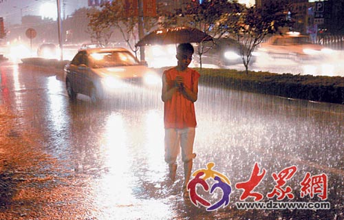 |  強降雨夜襲泉城,沖走了難耐暑熱。周青先 攝