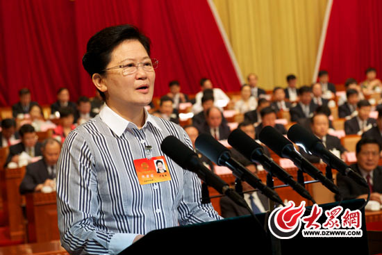參加山東省工會第十四次代表大會的代表在聽取工作報告。
