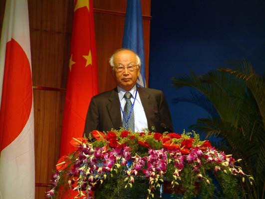 大眾網(wǎng)10月8日威海訊 今天,2004東北亞經(jīng)濟(jì)合作論壇在威海隆重開幕。圖為韓國前總理南德佑在論壇開幕式上致辭。(特派記者 曲濤 報道) |