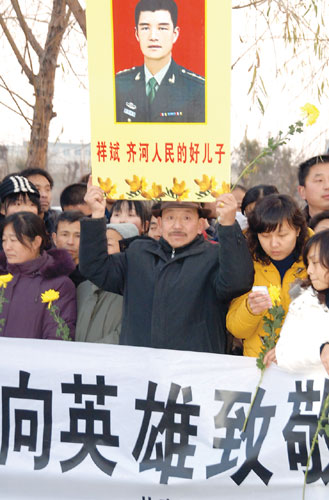 12月6日,齊河縣群眾在晏城火車站迎接英靈。 新華社發(fā)