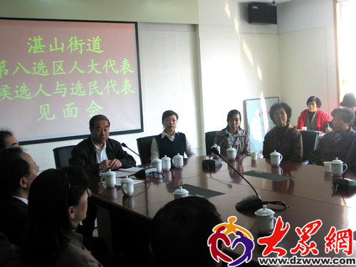 11月14日下午,青島市市南區湛山街道辦事處會議室內氣氛熱烈,暖意融融,湛山街道第八選區人大代表候選人正在這里與選民代表見面。幾十位選民代表輪翻向三位代表候選人提問,選民們最關心的就是候選人當選代表后能為社區,能為老百姓做些什么。