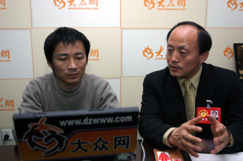 棗莊海揚(yáng)紡織有限公司董事長(zhǎng)兼總經(jīng)理、市工商聯(lián)副會(huì)長(zhǎng)田友海(右)作客大眾網(wǎng)