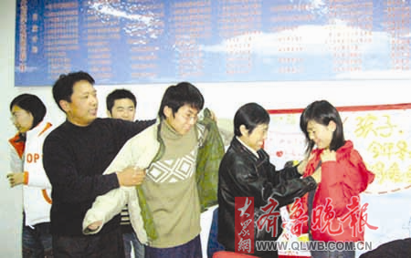 2006年12月,駐濟某高校教師給貧困生捐贈冬衣。 (本報資料片) 委員觀點 “這是孩子們的福音”