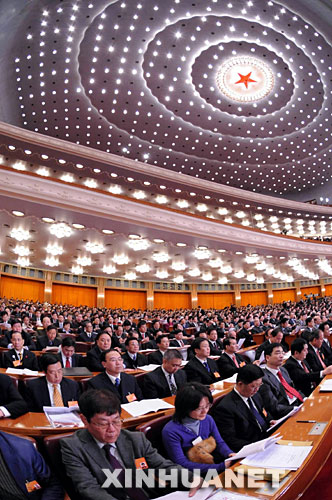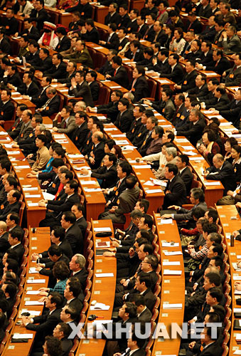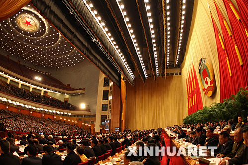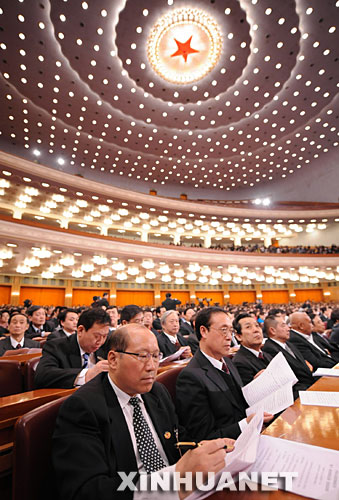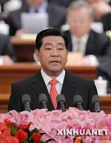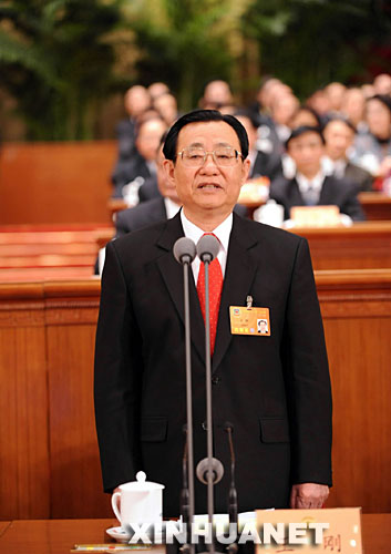 3月3日,中國人民政治協(xié)商會議第十一屆全國委員會第一次會議在北京人民大會堂開幕。賈慶林代表政協(xié)第十屆全國委員會常務(wù)委員會向大會作工作報告。 新華社記者饒愛民攝