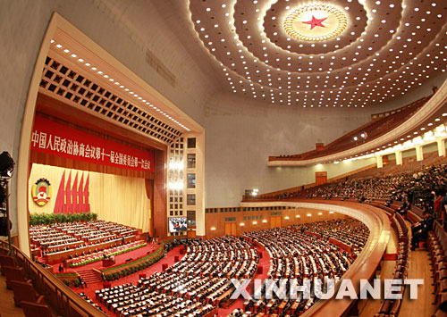 3月3日,中國人民政治協(xié)商會議第十一屆全國委員會第一次會議在北京人民大會堂開幕。這是大會會場。 新華社記者樊如鈞攝