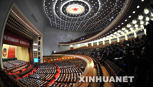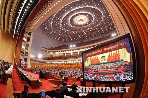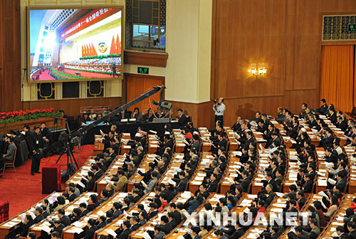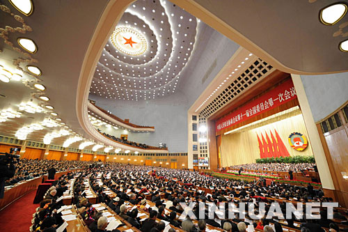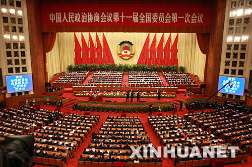 3月3日,中國人民政治協(xié)商會議第十一屆全國委員會第一次會議在北京人民大會堂開幕。這是大會會場。 新華社記者饒愛民攝