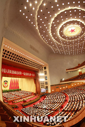 3月3日,中國人民政治協(xié)商會議第十一屆全國委員會第一次會議在北京人民大會堂開幕。這是大會會場。 新華社記者龐興雷攝