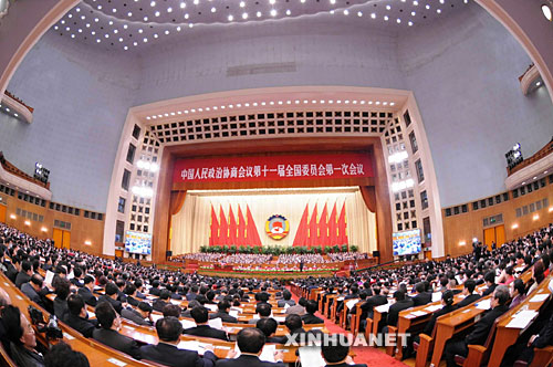3月3日,中國人民政治協(xié)商會議第十一屆全國委員會第一次會議在北京人民大會堂開幕。 新華社記者高潔攝