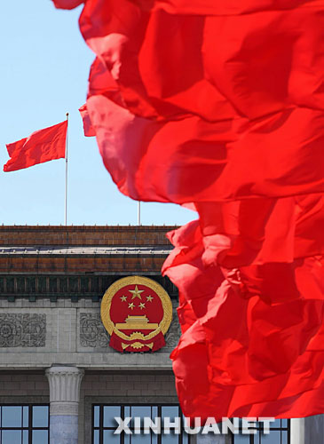 3月3日,北京人民大會堂前紅旗飄揚(yáng)。新華社記者李濤攝