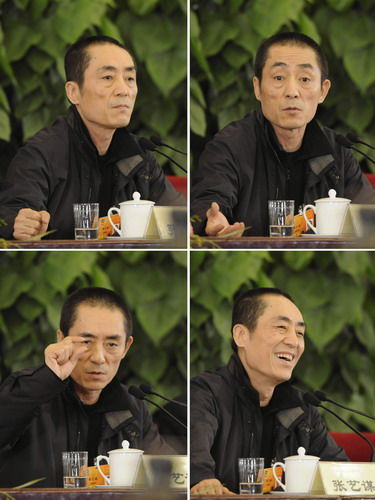 張藝謀委員回答記者提問時的4個瞬間。新華社記者戴旭明攝
