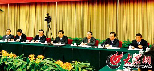 □記者 房賢剛 報道 3月9日,中共中央總書記、國家主席、中央軍委主席胡錦濤參加十一屆全國人大一次會議山東代表團審議。