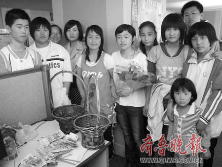 5月17日、18日,濟南高新區第一實驗學校八年級一、二班的同學們自發組織起來,利用課余時間在泉城廣場義賣鮮花,然后將賣花的錢分兩次送到報社,用自己的實際行動為災區人民獻愛心。 本報記者 杜洪雷 攝